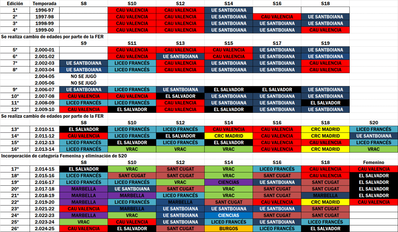 En una segunda fase de crecimiento, el torneo continuó ampliando su base de participantes con la llegada de CRC Pozuelo, VRAC Quesos Entrepinares y CR Sant Cugat. Estas incorporaciones coincidieron con un notable aumento del número de equipos, categorías y sedes, y contribuyeron a elevar el nivel competitivo y organizativo del evento.
